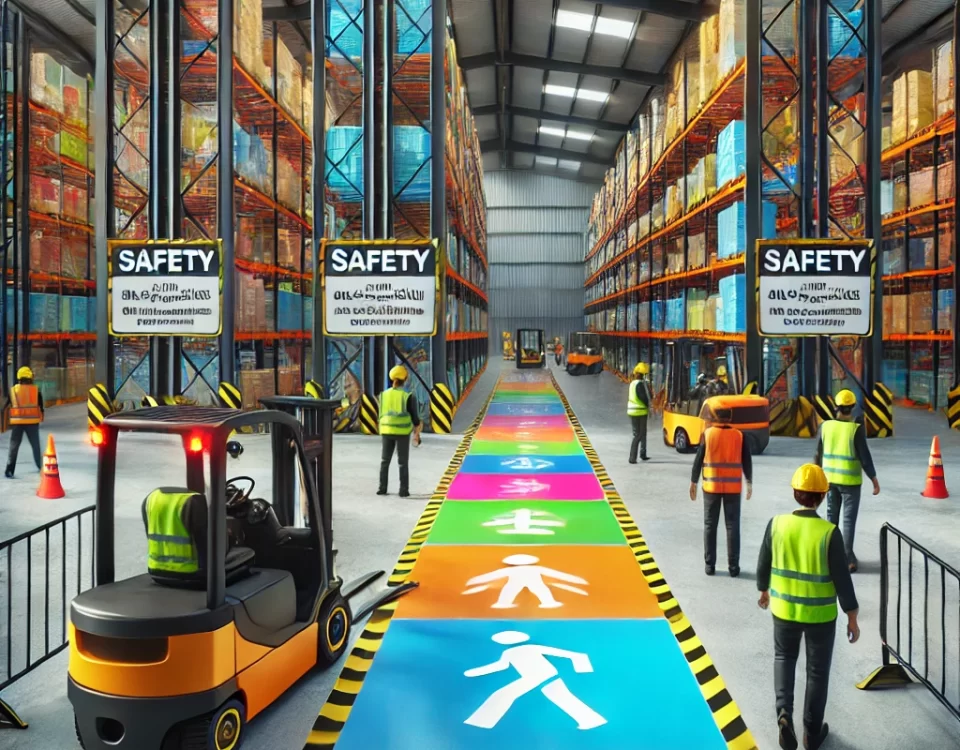 - Highlight safety reminders in high-traffic areas, such as forklift zones.