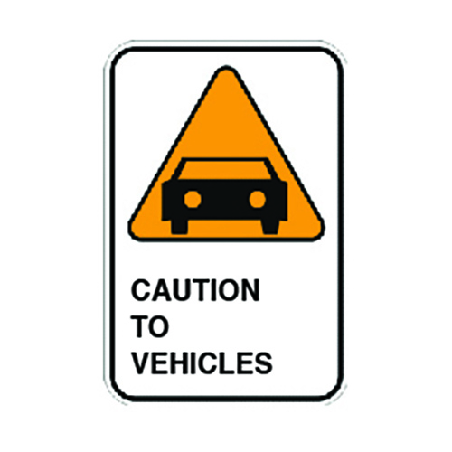 Poster – Caution vehicles Dimensions: 12×18 Aluminum 064 Rounded corners Engineer-grade vinyl Black outlines White background, yellow and black pictogram. Price per unit