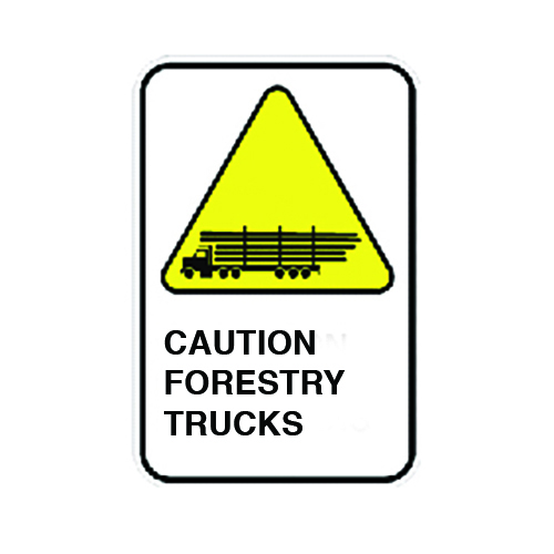 Poster – Caution: Forestry Trucks Dimensions: 12×18 Aluminum 064 Rounded corners Engineer-grade vinyl Black outlines White background, yellow and black pictogram. Price per unit