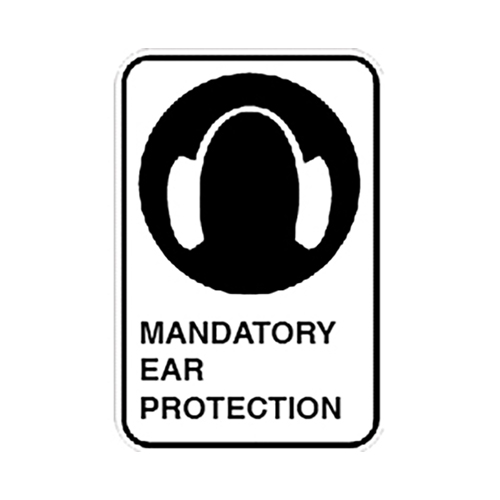Poster – Mandatory ear protection – 0.064 aluminum – Engineer vinyl UV printing – 12×18 – STANDARD