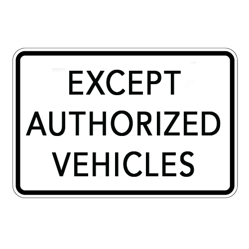 Poster – Except for Authorized Vehicles – Aluminum 0.064 – Engineer Grade Vinyl Printed Glossy Laminate – 36×24 – STANDARD