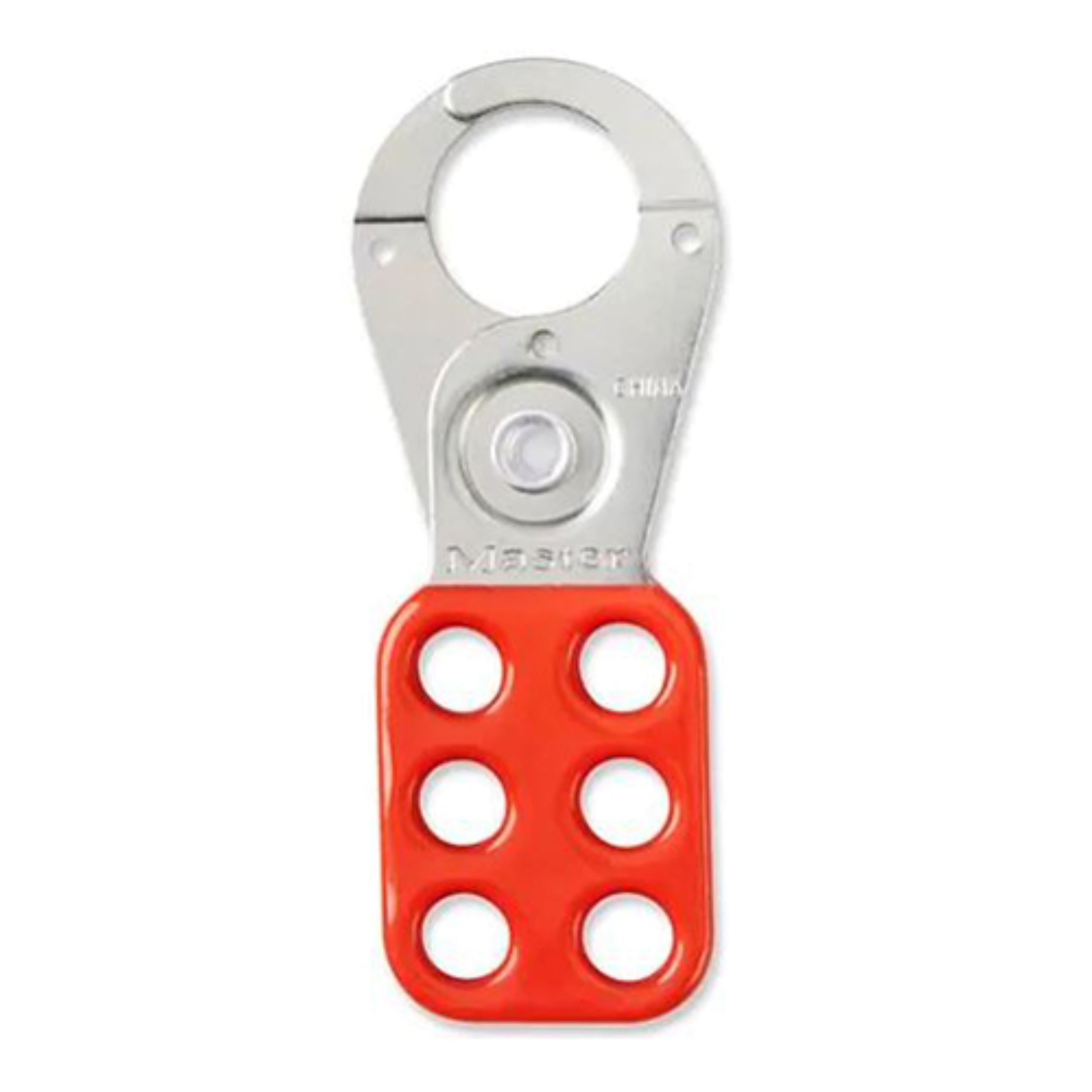 Moraillon de cadenassage – Accepte 6 cadenas de 9.8mm. -Mâchoire en acier, poignée recouverte de vinyle rouge. -Anse 1.5 pouce de diamètre intérieur. #131