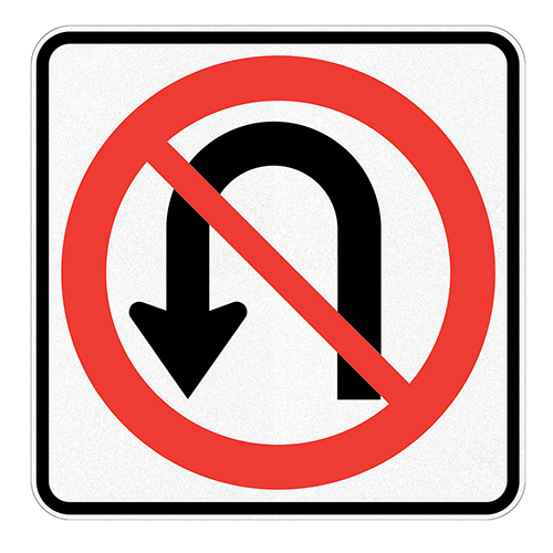 Affiche Interdiction de faire demi-tour Dimensions 24×24 Aluminium 0.064 Vinyle Grade Ingénieur Impression UV Fond blanc avec pictogramme Interdiction de faire demi-tour Prix à l’unité