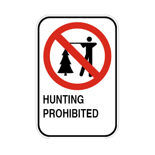 No Hunting Sign – Size: 12×18 – Aluminum 064 – Rounded corners – Engineer-grade vinyl – Black outline – White background, red and black pictogram. – […]