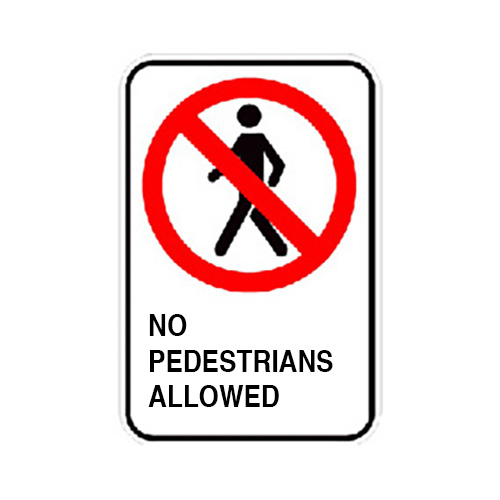 Sign – No Pedestrians – Aluminum 0.064 – Engineer Vinyl UV Printing – 12×18 – STANDARD