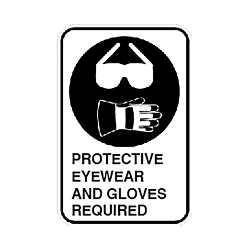 Sign – Protective eyewear and gloves required – Aluminum 0.064 – Engineer vinyl UV printing – 12×18 – STANDARD