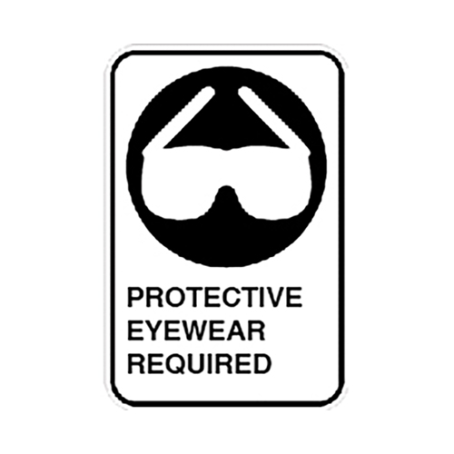 Protective eyewear required Sign – Size: 12×18 – Aluminum 064 – Rounded corners – Engineer-grade vinyl – Black outline – White background, red and black pictogram. […]