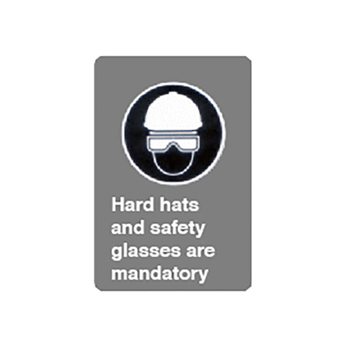 Poster – Hard hats and safety glasses mandatory – Aluminum 0.064 – Engineer vinyl UV printing – 12×18 – STANDARD
