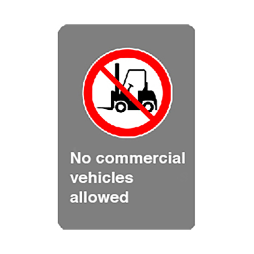 Sign – No industrial vehicles – Aluminum 0.064 – Engineer vinyl UV printing – 12×18 – STANDARD