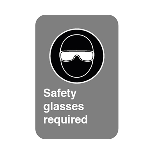 Sign – Safety glasses mandatory – Aluminum 0.064 – Engineer vinyl UV printing – 12×18 – STANDARD