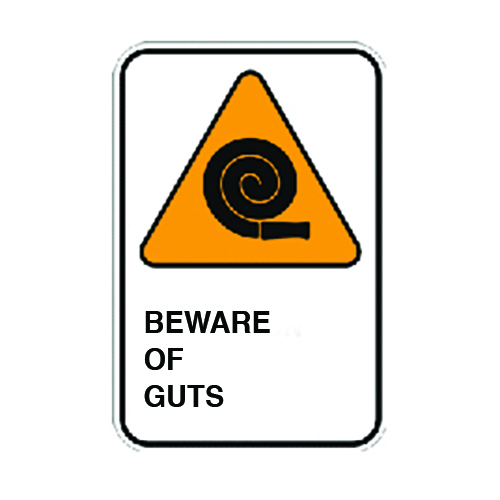 Poster – Caution beware of guts – Aluminum 064 – Engineer Grade Vinyl – 12×18