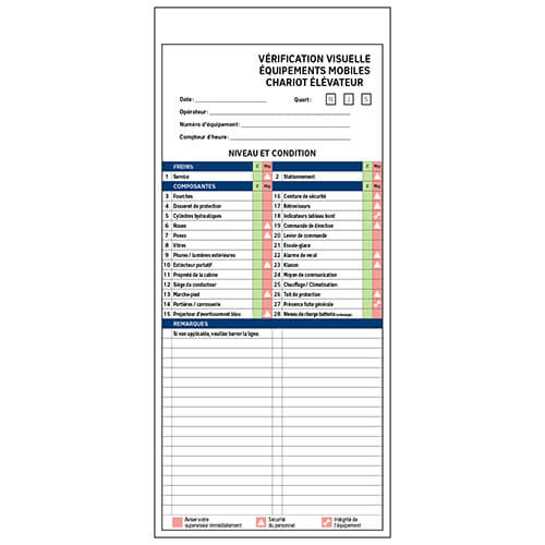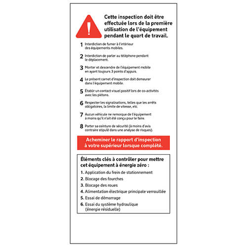 Mobile equipment visual inspection booklet for forklifts, 4×9.