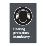 Poster – Mandatory Hearing Protectors – Aluminum 0.064 – Glossy Laminated Engineer Grade Vinyl – 12×18 – STANDARD