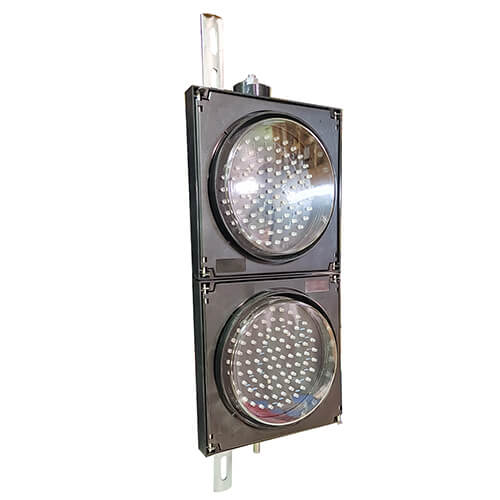 2 red and green lights, 8" diameter, IP66 black plastic housing, wall mounting bracket.